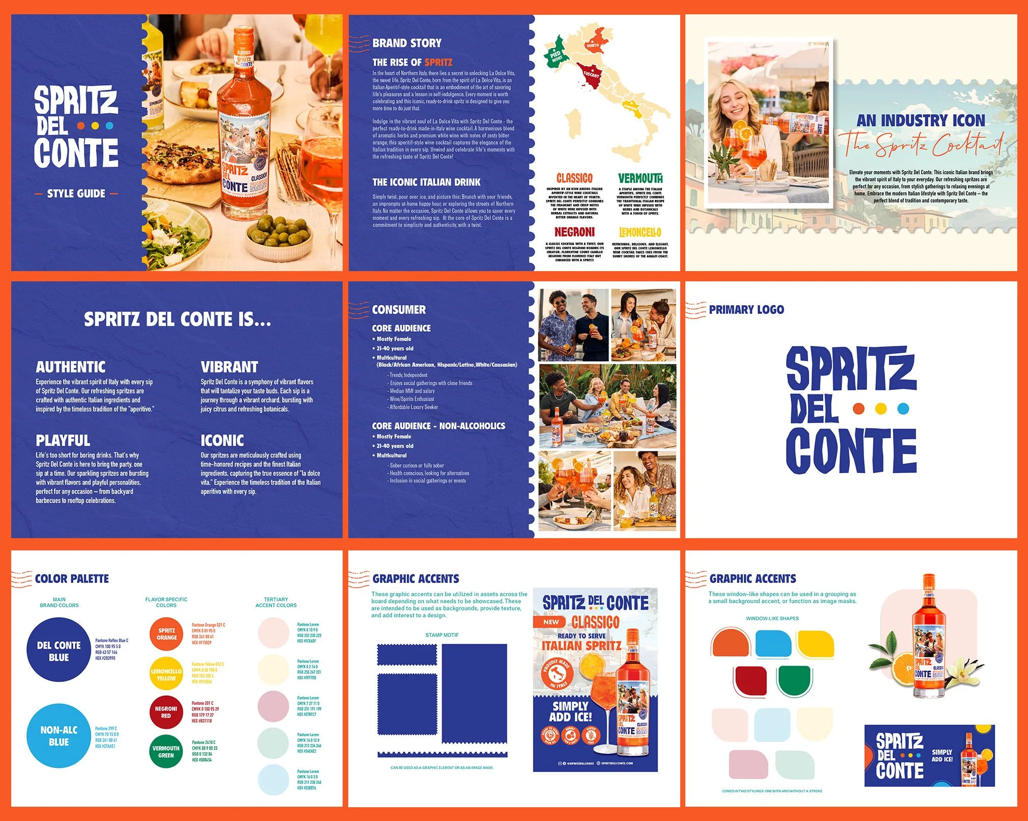 A year after its launch, Spritz Del Conte, an authentic ready-to-serve Italian spritz, had successfully gathered key customer insights that help guide a reimagining of the brand messaging and identity. In collaboration with the Brand Managers, we sought to evolve beyond a traditional aspirational model. Instead, we focused on bringing the convenience of its ready-to-serve nature and establish a powerful market presence befitting its innovation, variety, and cost effectiveness.